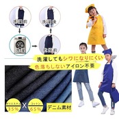 幼稚園、保育園、小学校、学校の行事、料理教室、図工、絵画、陶芸などいろんなシチュエーションに使用できるシンプルかつかわいキッズエプロンです。