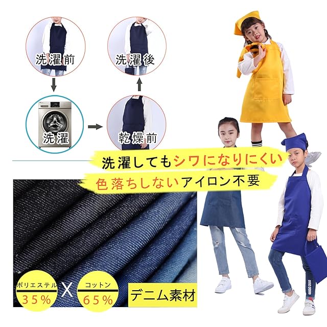 [BIGHAS] キッズ エプロン 3点セット 子供 三角巾 巾着バッグ 無地 男の子 女の子 色落ちしない ホコリが付きにくい (高学年用(140~160cm) L, デニムグリーン) | BASE LINE