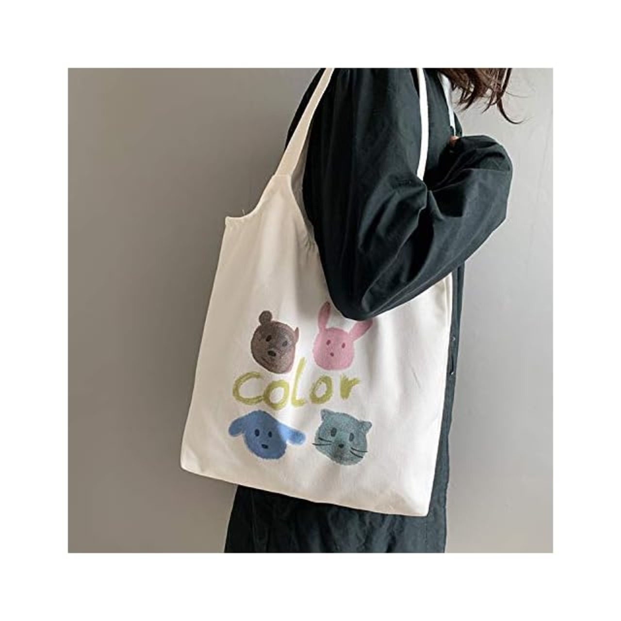 商品名:[ザボンチー] かわいいキャンバスバッグ トートバッグ 大容量 肩掛けバッグ 通学 出掛けバッグ ファスナー/ボタン付き (かわいい動物)