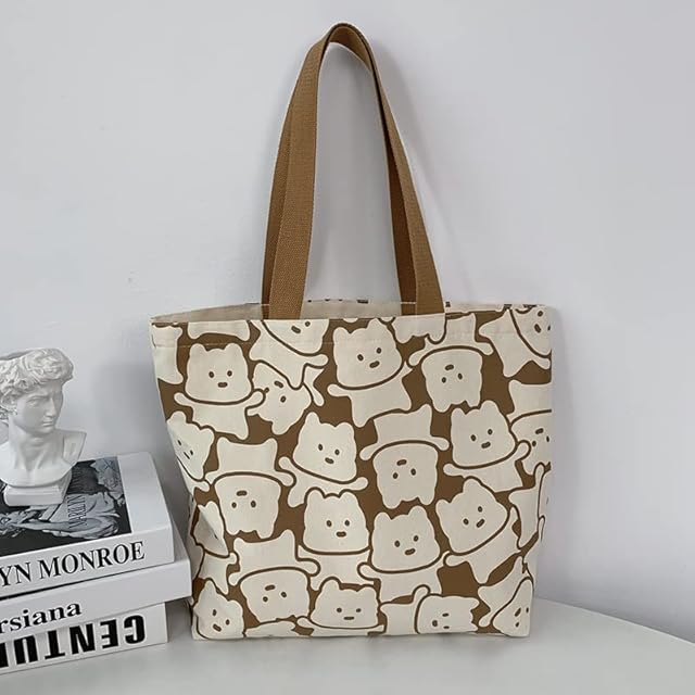 商品名:[ザボンチー] かわいいキャンバスバッグ トートバッグ 大容量 肩掛けバッグ 通学 出掛けバッグ ファスナー付き (カートゥーンクマ)