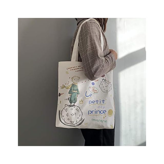 <br> <b>【サイズ】</b> <br> 縦38cm×横34cmで、およそ150クラムで、ファスナー付きです。 <br> <br><b>【ショルダーバッグ】</b><br> おしゃれな星の王子さまショルダーバッグでカジュアルで出掛けられます。<br> <br> <b>【大容量と複数ポケット】</b> <br> ドリンク、A4ファイル、お財布、眼鏡など様々なものが入れます。小さいなポケットもついてますので、リップ、かぎなども別々で収納できます。<br> <br><b>【楽な洗い方】</b><br> ソフトな綿生地で、キャンバス表地も落とせないので、手で洗うこともできますし、洗濯機で洗うこともできます。 <br> <br><b>【様々な出掛けサポート】</b><br> 柔らかい生地なので、畳むことができ、さらに、軽くてお肩に余計なプレシャーが与えないので、通学、通勤、出掛けに最適なショルダーバッグです。<br>