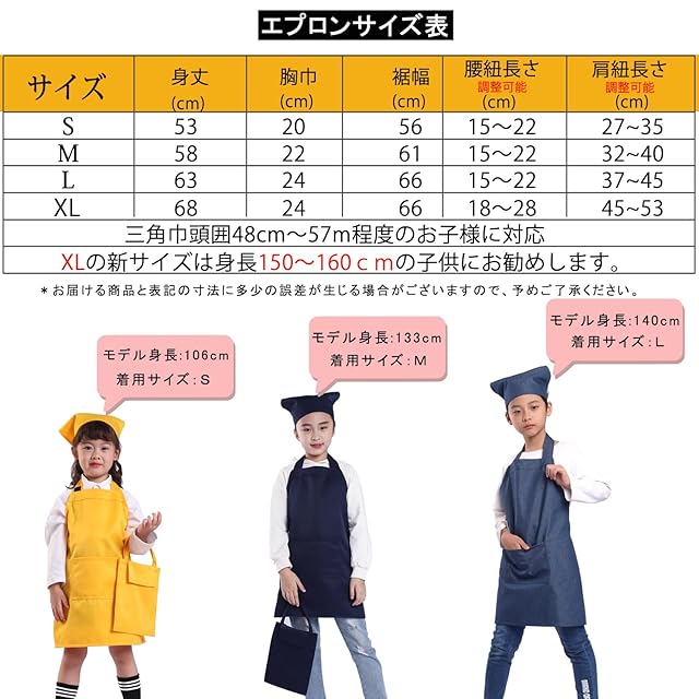 商品名:[BIGHAS] キッズ エプロン 3点セット 子供 三角巾 巾着バッグ 無地 男の子 女の子 色落ちしない ホコリが付きにくい (幼児用(100~120cm) S, デニム)