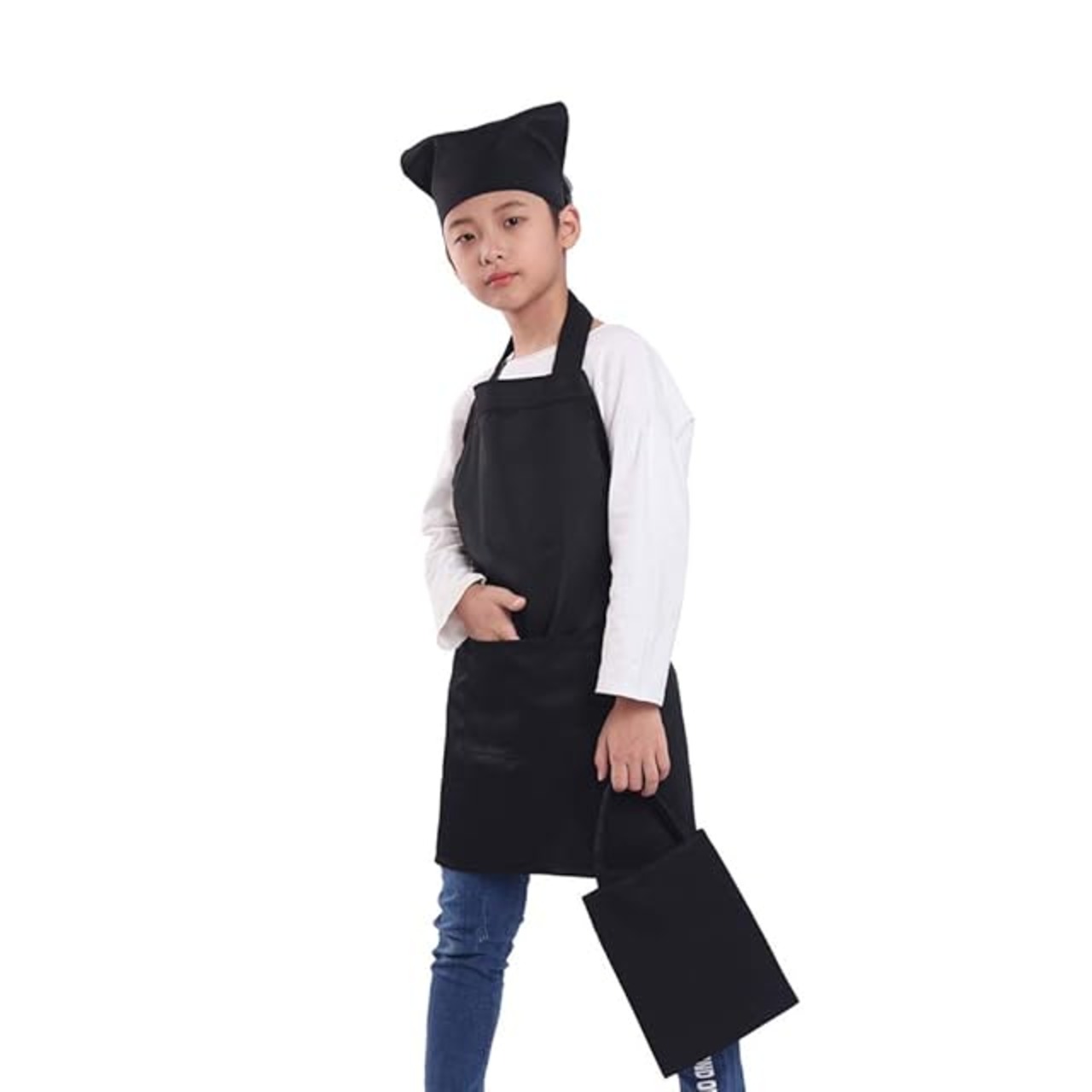 [BIGHAS] キッズ エプロン 3点セット 子供 三角巾 巾着バッグ 無地 男の子 女の子 色落ちしない ホコリが付きにくい (高学年用(140~160cm) L, ブラック) | BASE LINE