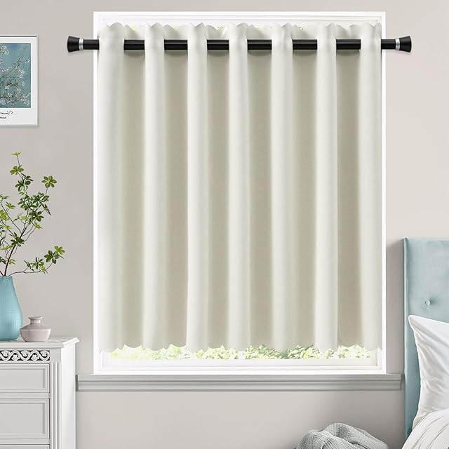 AooHome 遮光カーテン 小窓 1級遮光 アイボリー 1枚入れ UV カフェカーテン 見えにくい 無地 70cm丈 省エネ 遮熱 断熱 高密度布製 目隠し 防寒 保温 洗える 間仕切り 厚手 キッチン 浴室 トレイ 子供部屋 140cm幅 | BASE LINE