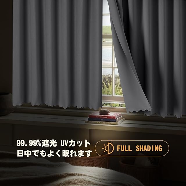 【取付方法】両端の直径2.0cm以下の突っ張り棒が使用可能です。カラー:グレー[遮光1級・厚め] ・ 幅100cm x 丈70cm [1枚入れ] 適応窓サイズ:幅50-95cm*別途対応可能な突っ張り棒をご用意ください。ご注意:同じ等級であっても、カーテンの明度や色彩によって遮光の度合いが変わります。薄い淡い色は光を通しやすく、濃い暗い色は光を通しにくいです。遮光性を重視される方は濃色をおすすめします。