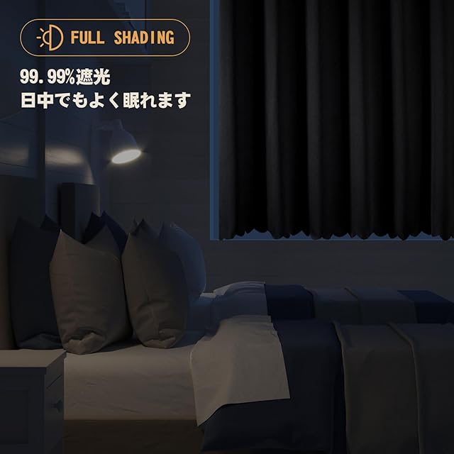 【取付方法】両端の直径2.0cm以下の突っ張り棒が使用可能です。カラー:ブラック[遮光1級・厚め] ・ 幅140cm x 丈60cm [1枚入れ] 適応窓サイズ:幅70-120cm *別途対応可能な突っ張り棒をご用意ください。ご注意:同じ等級であっても、カーテンの明度や色彩によって遮光の度合いが変わります。薄い淡い色は光を通しやすく、濃い暗い色は光を通しにくいです。遮光性を重視される方は濃色をおすすめします。