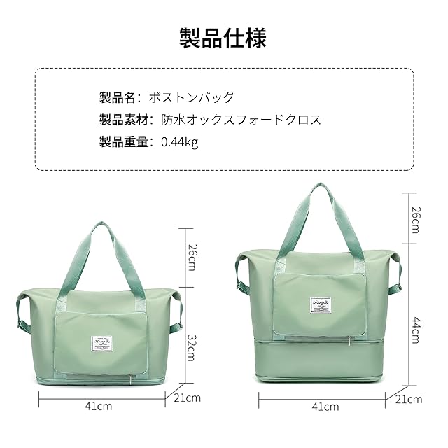 商品名:ALLMIRA キャリーオンバッグ 折りたたみ ボストンバッグ 折畳み 大容量 旅行バッグ スポーツバッグ ダッフルバッグ トラベルバッグ 防水 軽量 折り畳み 旅行カバン キャリーオン トートバッグ 乾湿分離 撥水 レディース 出張 修学旅行 (ブラック) (桜色) (緑)