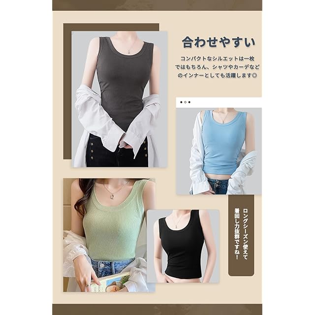 【通気性抜群・心地よくフィット】凹凸感のあるリブ素材で伸縮性があり、程よいフィット感でボディラインを美しく見せてくれます。 程よい厚みで、通気性があり、シワや毛玉ができにくいのでお手入れも簡単。夏には一枚でトップスとしても使える万能アイテム!