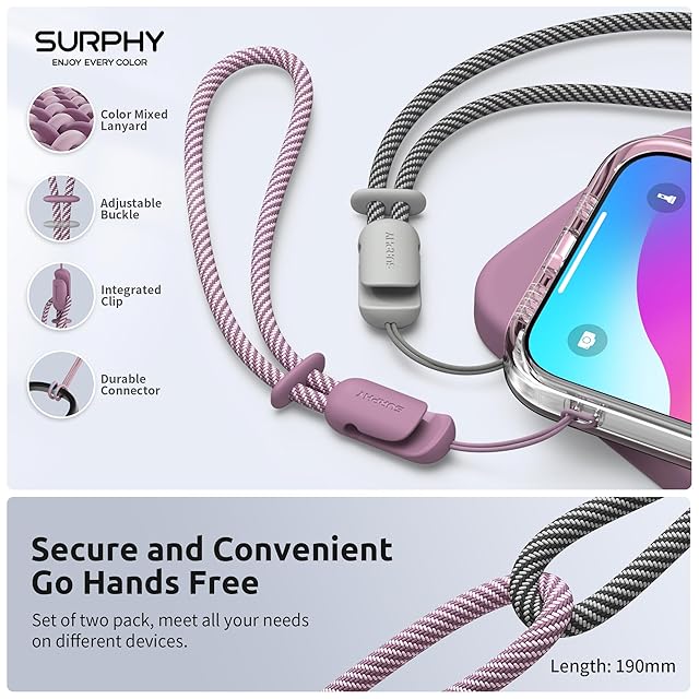 商品名:SURPHY ハンドストラップ 2本セット 長さ調整可能 携帯電話/カメラ/USBメモリ/鍵マスコット/キーなどにも適応 携帯ストラップ スマホひも (ピンクパープル&グレー)