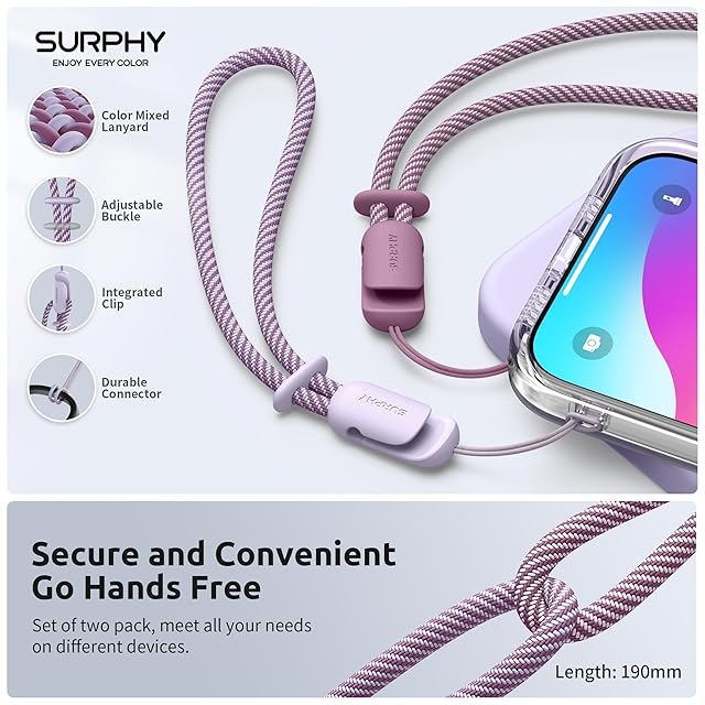 商品名:[SURPHY] ハンドストラップ 2本セット 長さ調整可能 携帯電話/カメラ/USBメモリ/鍵マスコット/キーなどにも適応 携帯ストラップ スマホひも (ライトパープル&ピンクパープル)
