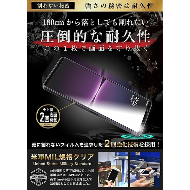 商品名:ガラスザムライ Xperia 1 マークⅣ 用 ガラスフィルム SOG06 用 SO-51C 用 全面保護 硬度 10H 強化ガラス 保護フィルム 米軍MIL規格 349-3d