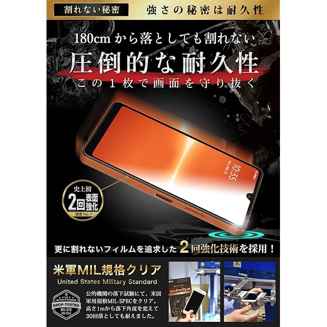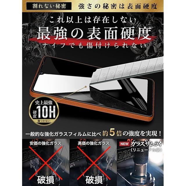 【ナイフでも傷つかない】現在市場では最も硬い10Hの表面硬度。画面割れ”ゼロ”を目指し、カッターでも傷つかず、180cmから落としても割れない耐久性を実現