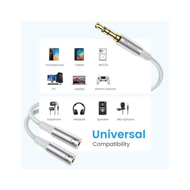 </b>MOSWAG高品質3.5 mmステレオデュアル3.5 mmメス-オーディオエクスペリエンスを向上させるために3.5 mmデュアル3.5 mmオス-メスコネクタを導入した多機能で信頼性の高いヘッドホンシャントです</br></b>デュアル3.5 mmメスコネクタを備えたY字型補助延長線は、2つのヘッドホンまたはヘッドホンをオーディオソースに接続することができます。大好きな音楽を友達と共有したい、映画を一緒に見たい、友達とゲームをしたい、といったニーズにも応えてくれるスプリッタです</br></b>は、サムスン、タブレット、ノートパソコンなどの人気デバイスと互換性があり、お気に入りのオーディオソースに簡単に接続できます。白外観により、デバイスとのシームレスな統合を確保しながら、セットアップにスタイリッシュさを追加します</br></b>このセパレータは良質な材料で作られており、安定した信頼性のある接続を確保し、優れたオーディオ性能を確保することができます。3.5 mmコネクタはコンパクトに設計されており、高品質のオーディオ転送を提供し、歪みが発生しません</br></b>コンパクトで軽量なので、旅行や日常使いにぴったりです。バッグやポケットに入れて、いつでもどこでも共有オーディオを楽しむことができます</br></b>3.5 mmデュアル3.5 mmマザープラグにより、音楽や映画などを他人と共有するためのオーディオ体験を強化します。今すぐ購入して、エンターテインメント体験を新たなレベルに引き上げてください。イヤホンジャックセパレータオーディオステレオYセパレータ補助延長線イヤホンジャックセパレータオスとメスのデュアルジャックアダプタはサムスンタブレットノートパソコンと互換性があり、ブラック</br></b>MOSWAGはお客様に最高品質の製品と優れたカスタマーサービスを提供することに力を入れています。このイヤホン分岐アダプタの問題が発生した場合は、いつでもお問い合わせください。迅速かつ効果的に解決します。高品質3.5 mmステレオデュアル3.5 mmメスヘッドホンジャックセパレータ</br>