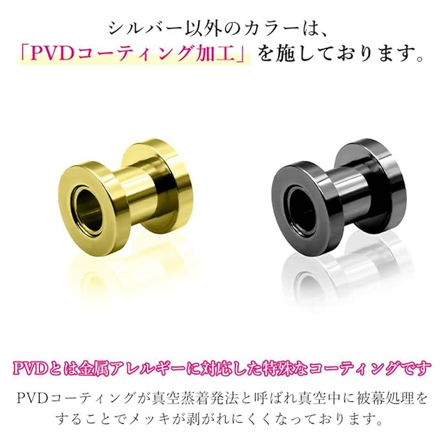 【剥がれなくいPVDコーティング】シルバー以外のカラーはPDVコーティングコーティングで従来のメッキ加工よりもメッキがはがれにくいのが特徴です。