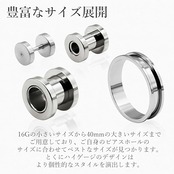 【個性的な耳元を演出】シンプルな定番デザインの拡張用ピアス。フレッシュトンネルをはじめ、シングルフレアやダブルフレアのデザインを豊富に揃っています。ラージホールのデザインは存在感抜群で注目を集めます。リング系のボディピアスを通すホールトゥコーデにもオススメ。