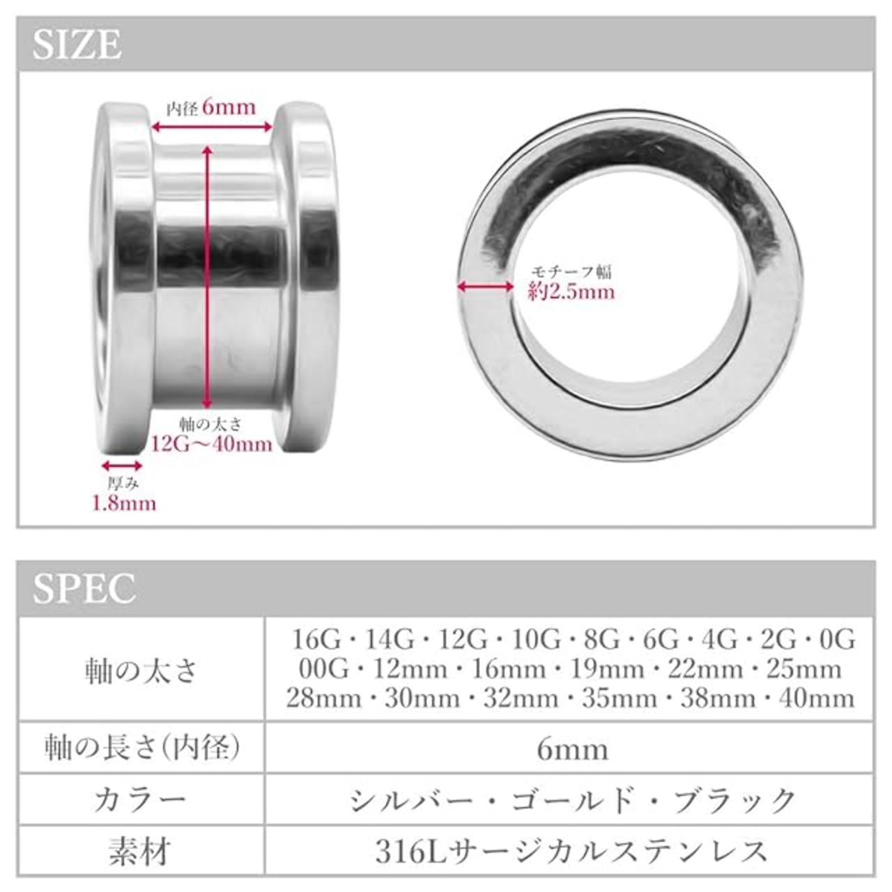 【豊富なサイズ展開】サイズ16Gの小さいサイズから40mmの大きいサイズまでご用意しており、ご自身のピアスホールのサイズに合わせてベストながサイズが見つかります。とくにハイゲージのデザインはより個性的なスタイルを演出します。
