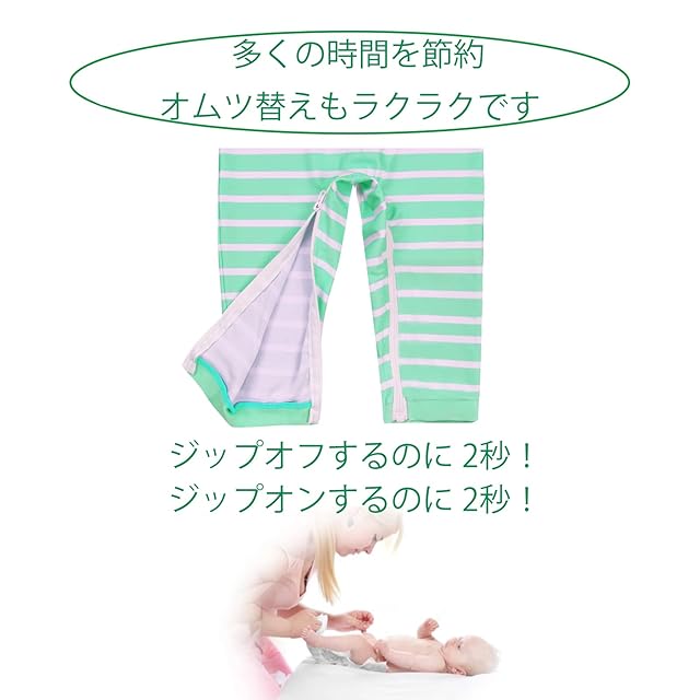 股間にジッパーが付いているベビー水着です!着脱が簡単で、赤ちゃんのおむつをすばやく交換できます。