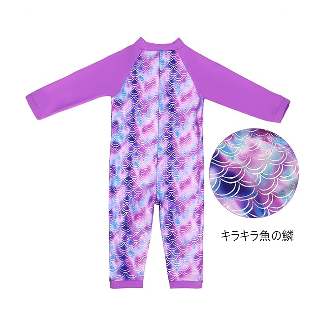商品名:weVSwe ベビー 水着 ラッシュガード 100 クロッチジッパー付き おむつ交換やすい 紫の鱗 UPF51+ UVカット