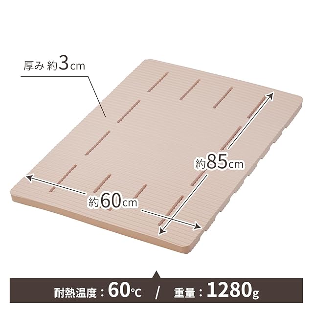 製品サイズ:(約)60×85cm 厚み3cm・本体重量:(約)1280g・耐熱温度:60度