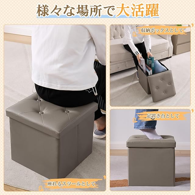 【多機能・収納力抜群】この収納スツールは、おもちゃ、装飾品、本、ぬいぐるみ、その他のささいなものを収納でき、衣類箱や寝具収納ボックスや足置きとして活躍、お部屋をよりきれいになれます。リビングや玄関、寝室など様々なシーンで利用できます。