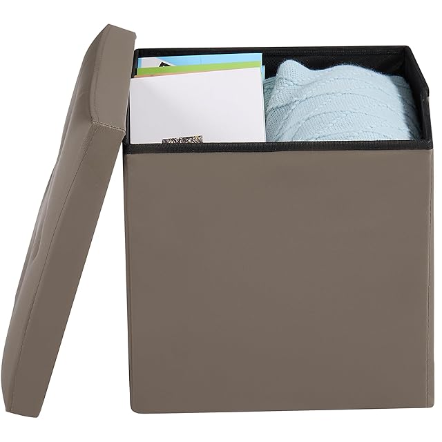 VECELO 収納スツール オットマン 収納ボックス 幅38*奥行き38*高さ38CM 耐荷重80kg 折り畳み可能 踏み台 足置き リビング/玄関/寝室適用 おもちゃ箱 洋服収納 化粧品収納ボックス ブラウン | BASE LINE