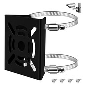 【アップグレード版】防犯カメラブラケットの主体は厚めの鉄を使い、洗浄、錆止め、ラッカー、静電気除去処理され、耐光性もよい、 耐久性に優れています。付属するバンドはステンレス製なので錆に強く、設置機器の落下を防ぎます。ほとんどの防犯カメラの設置に適しています。あらゆるものを設置出来るよう、12個の取付穴と、中央に1つ大きめの穴を適正に設計設置しました。ステンレスねじが付属しているので、取り付けやすく、錆びない。