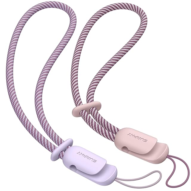 [SURPHY] ハンドストラップ 2本セット 長さ調整可能 携帯電話/カメラ/USBメモリ/鍵マスコット/キーなどにも適応 携帯ストラップ スマホひも (ピンク&ライトパープル) | BASE LINE