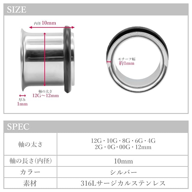 【豊富なサイズ展開】サイズ16Gの小さいサイズから40mmの大きいサイズまでご用意しており、ご自身のピアスホールのサイズに合わせてベストながサイズが見つかります。とくにハイゲージのデザインはより個性的なスタイルを演出します。