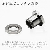 【ネジ式でカンタン着脱】片側がネジ式のキャッチになっているため着け外しも簡単でボディピ初心者にもおすすめ。なくしにくい設計なので安心です。