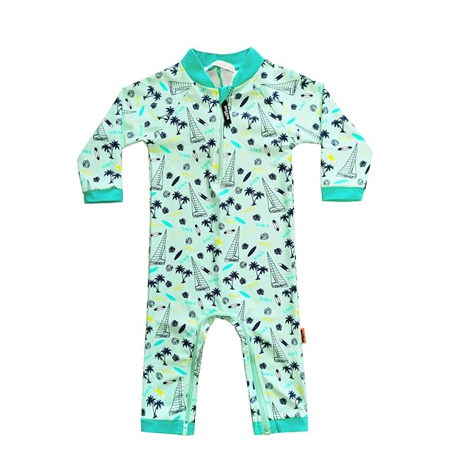 股間にジッパーが付いているベビー水着です!着脱が簡単で、赤ちゃんのおむつをすばやく交換できます。