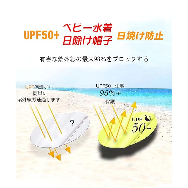 ソフトタッチ、通気性と速乾性がある、裏地付きて98%以上の紫外線を遮断することができます。赤ちゃんの肌を守ります。