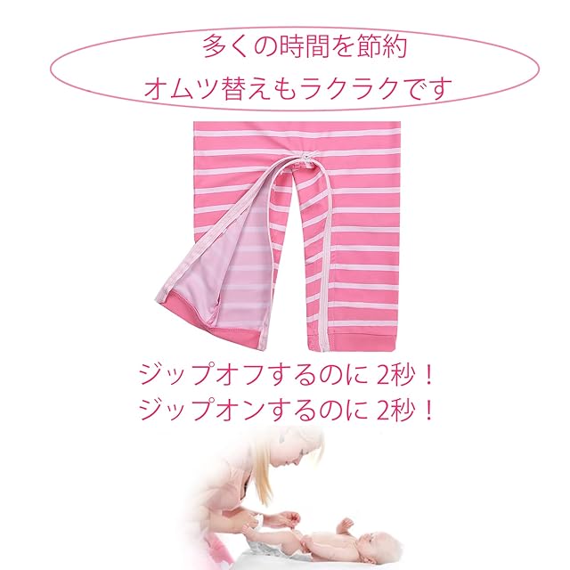 股間にジッパーが付いているベビー水着です!着脱が簡単で、赤ちゃんのおむつをすばやく交換できます。