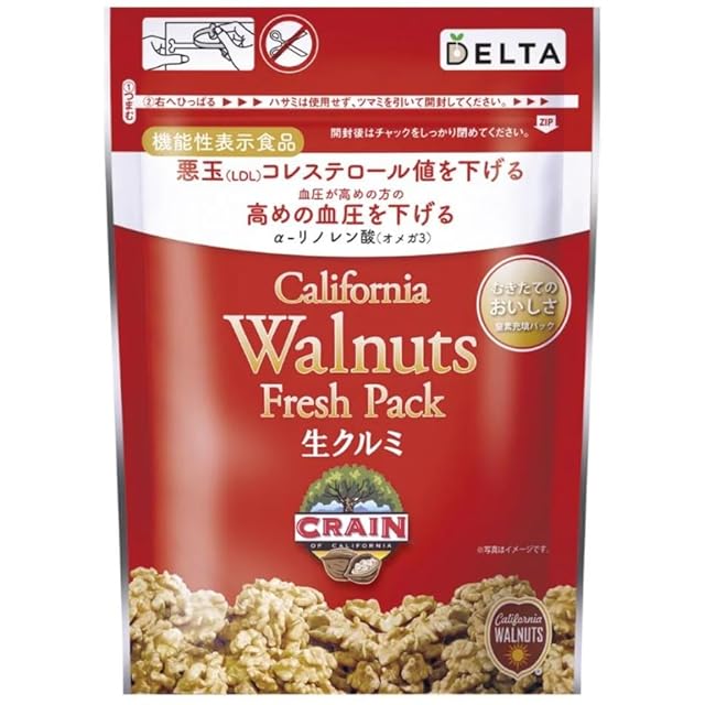✅[生くるみ窒素充填パックが機能性表示食品になりました] 生くるみ窒素充填パックが、おいしさはそのまま、機能性表示食品になりました。 本製品の生くるみにはα-リノレン酸が含まれます。α-リノレン酸には悪玉(LDL)コレステロール値を低下させる機能、 血圧が高めの方の血圧を低下させる機能があることが報告されています。 一日当たりの摂取目安量の28gを目安に、生くるみをそのままお召し上がりください。 届出番号:J126 機能性関与成分:α-リノレン酸
