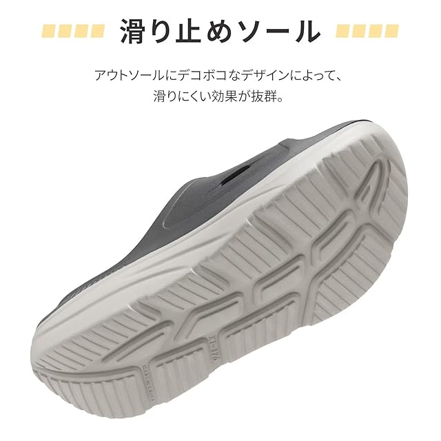 ■前後の湾曲により、自然な歩行をサポートしてくれます。そのため、運動後はもちろん、おうち時間やオフィス・日常と、さまざまなところで活躍します。内履き、外履き、季節関係なく使用することができます