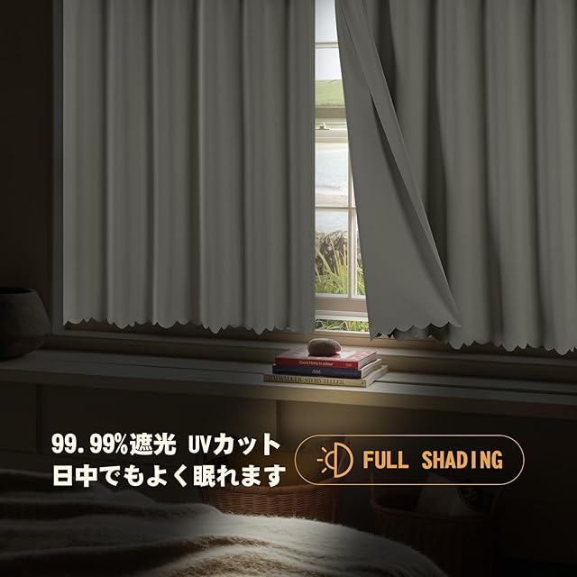 【生地】遮光1級生地(遮光率99.99%以上)を使用,外からの光をほとんど通さない、夏場の断熱効果、冬場の保温効果が期待できます。 昼間カーテンを閉めたお部屋のなかで相手の顔の表情が分からない程度にまでお部屋を暗くできます。同じ等級であっても、カーテンの明度や色彩によって遮光の度合いが変わります。薄い淡い色は光を通しやすく、濃い暗い色は光を通しにくいです。遮光性を重視される方は濃色をおすすめします。【三重織り技術】生地は三重構造のテクノロジーの技術利用して黒い系を織り込んでいるから、優れた遮光機能が備えております。きちんと室外からの日差しや紫外線などをしっかり遮られる機能付きの厚地遮光カーテンです。小窓やカラーボックスや車内などの目隠しにピッタリ。【UVカット】この小窓遮光カーテンを使えば、紫外線をカットすることによってお肌も守るし、家具の日焼けや色褪せ防止にも働きます。また、犬の目は人間よりも紫外線に弱いと言われております。紫外線は犬の皮膚にもダメージを与えるので、浴び過ぎなら犬にとっても大敵です。そのため、UVカット効果で大切なペットを紫外線から守れます。【柔らかい高密度生地・表裏同色】高密度と柔らかい生地で使用、表裏同色両面を使用できます。厚みがあり、柔らかく、洗濯機で洗っても毛玉ができません。お手入れしやすいのでいつも清潔に使用できます。カーテンの重みで洗濯ジワも伸ばすことができので、形態安定としてはとても効果が期待できます。【取付方法】両端の直径2.0cm以下の突っ張り棒が使用可能です。カラー:ホワイト[遮光1級・厚め] ・ 幅60cm x 丈50cm [2枚入] 適応窓サイズ:幅50-95cm *別途対応可能な突っ張り棒をご用意ください。ご注意:同じ等級であっても、カーテンの明度や色彩によって遮光の度合いが変わります。薄い淡い色は光を通しやすく、濃い暗い色は光を通しにくいです。遮光性を重視される方は濃色をおすすめします。