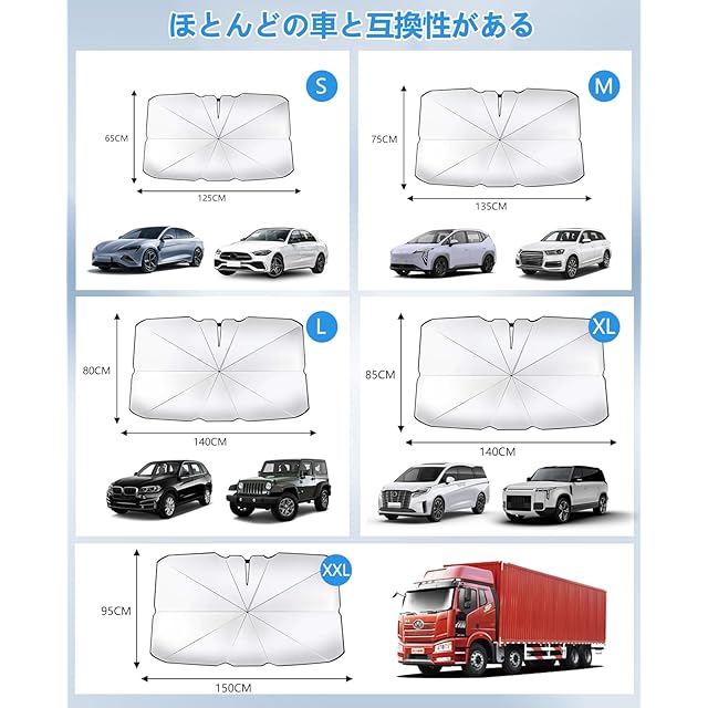 【ほぼ全車種に適用&18か月】車用サンシェードは(S、M、L、XL)の4つのサイズから選ぶことができます。ほとんどの車種に適用できます。車用サンシェードを購入いただいた後、18か月間の期間を提供いたします 後日、サイズが合わない場合やその他の問題が発生した場合は、Kemiuuまでお気軽にご連絡ください。