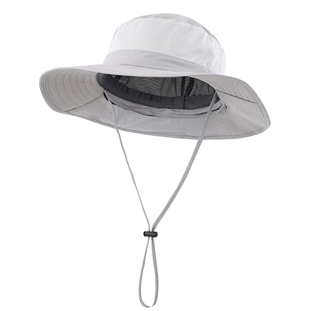 商品名:[Connectyle] アウトドア ユニセックス UPF50+ メッシュ サファリハット つば広 日焼け防止 農作業 帽子 UVカット ハット (ライトグレー)