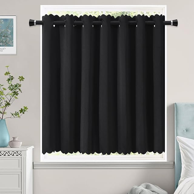 AooHome 遮光カーテン 小窓 1級遮光 ブラック 1枚入れ UV カフェカーテン 見えにくい 無地 60cm丈 省エネ 遮熱 断熱 高密度布製 目隠し 防寒 保温 洗える 間仕切り 厚手 キッチン 浴室 トレイ 子供部屋 100cm幅 | BASE LINE