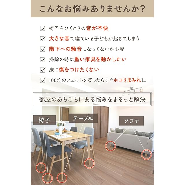 テフロン素材の高品質スライダーで、重たい家具もラクラク移動!掃除・模様替え・音対策もこれひとつで解決!