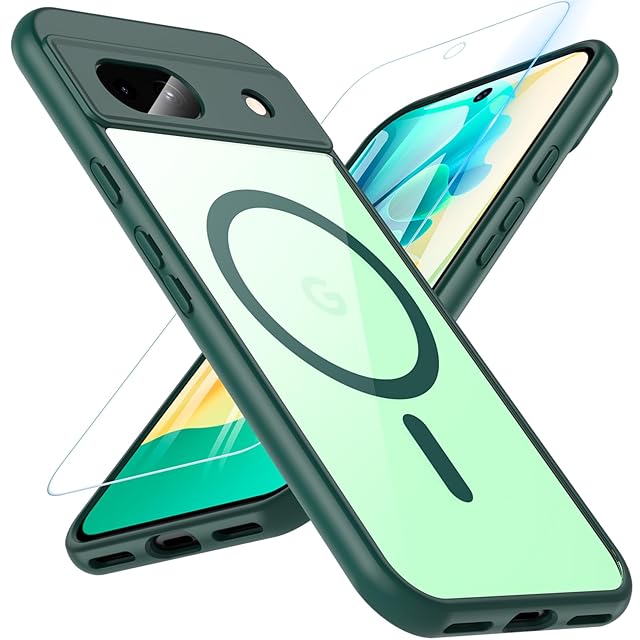 Google Pixel 8a ケース 【ガラスフィルム付き・MagSafe対応】 BESINPO Pixel 8a ケース 黄ばみなし ストラップホール付き グーグル ピクセル8a カバー 米軍MIL規格 耐衝撃 耐久性 google pixel 8a カバー マグネット搭載 マグセーフ対応 Google Pixel 8a スマホケース 6.1インチ グリーン+クリア | BASE LINE