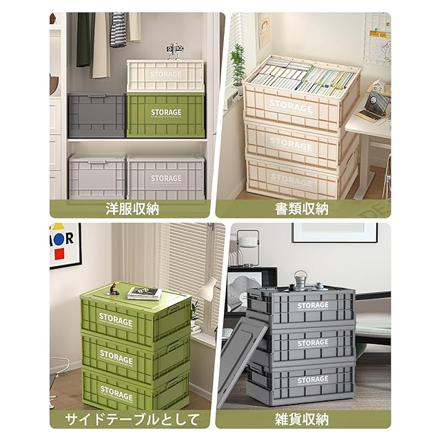 【多様なデザイン、大容量バリエーション】 オリーブグリーン:アウトドアキャンプに最適な車用コンテナボックスとして、自然との一体感を感じさせるリラックス感を提供します。 ライトグレー&ダークグレー:モダンなインダストリアルスタイルの室内収納やトランク収納(キャスター付き収納ケース)にぴったりです。 クリームホワイト:柔らかく温かみのある色合いで、明るく整った空間を演出します。 さらに、8種類のサイズバリエーションで、家庭用収納・キャンプ用品整理・車載収納など、あらゆるシーンに対応。実用性とデザイン性を兼ね備えた多機能コンテナボックスです。