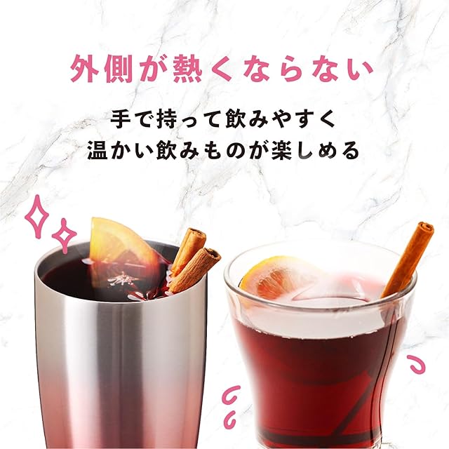 冷たいものを入れても結露しにくく、温かいものを入れたときは外側が熱くなりません。