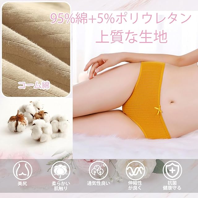 【製品仕様】素材:95%綿+5%スパンデックス。クロッチ部:100%綿、消臭、抗菌作用があります、あなたの健康をしっかりとお守りします。大切な部を守るために、2重生地を作ります。肌にやさしい快適 ショーツ レディース です。