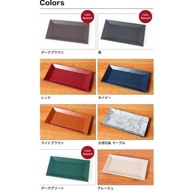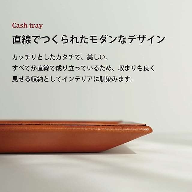 使いやすさとカタチにこだわった薄型トレイ。リアルレザー調の合成皮革を使用しており、シンプルながら高級感のある佇まい。</br>しっかりとした硬さがあるため、腕時計などの小物置き、ペントレイ、キャッシュトレイなど、様々な用途にマッチします。</br></br> ▶ 高級感のあるリアルレザー調の合成皮革を使用しております。</br> ▶ 多少の水濡れは、すぐに拭き取って頂ければ問題ございません。</br> ▶ 紙幣も余裕をもって置けるサイズなので、キャッシュトレイ、カルトン つり銭トレイとしてもおすすめです。</br></br> ■注意事項</br> ・モニターの発色具合によって実際の物と色が異なる場合がございます。</br> ・アルコールなどで拭き取りを行うと色落ち・変色することがありますのでご注意ださい。</br> ・濡れた場合は乾いた布で拭き取り、陰干し後に乾かしてからご使用下さい。