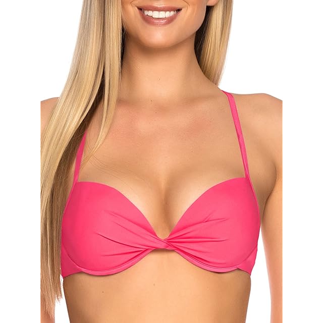 【ツイスト】このビキニトップは前ツイスト、後ろは調節可能なストラップバックにSホック留めのデザインで、一人ひとりに合わせたフィットと安全性。