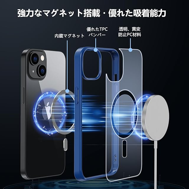【MagSafe対応&より高速·簡単に充電】ケース内部には2024年に新開発された強力なマグネットが搭載されており、吸着力と安定性が向上し、MagSafe充電対応で差し込みのいらない超簡単・超高速充電を実現しています。また、MagSafe対応アクセサリーもいろいろ!MagSafe充電器、MagSafeバッテリー、MagSafe車載ホルダー、MagSafeリングなどのMagSafeに対応した iPhone13 ケース いphone14 ケース です。いつでもどこでも使いやすいMagSafeデザインです。