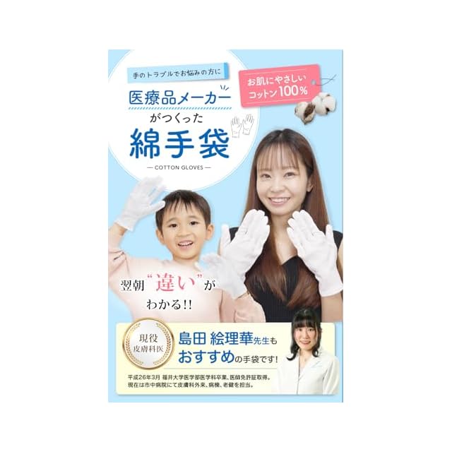 【皮膚科医島田先生もおすすめ!】皮膚科のプロも認める、子供たちから大人まで家族の肌を守るコットン手袋。キッズのデリケートな肌にも。皮膚科医の島田先生もおすすめする、コットン素材のめんてぶくろ。コットン手袋は、特にキッズ、児童に最適で、市場ではなかな見かけない、SSサイズがございます。こども用や低学年、高学年、と幅広い年齢層に対応したサイズが揃っています。子供たちのデリケートな肌を外部の刺激から守り、安心して使用できる品質を提供します。幼稚園児(幼児用)は別ページで小さいものを販売中。