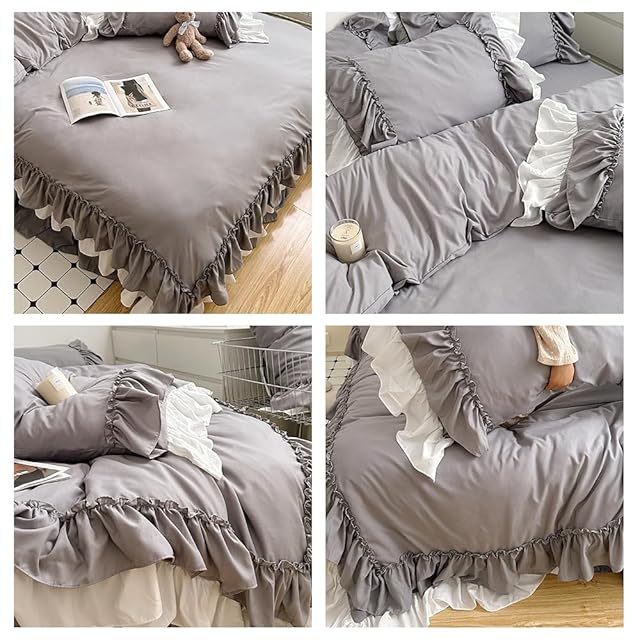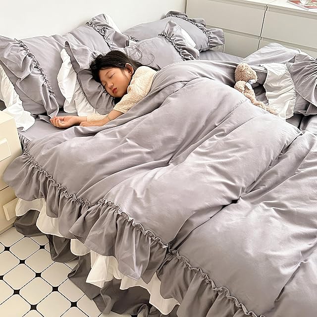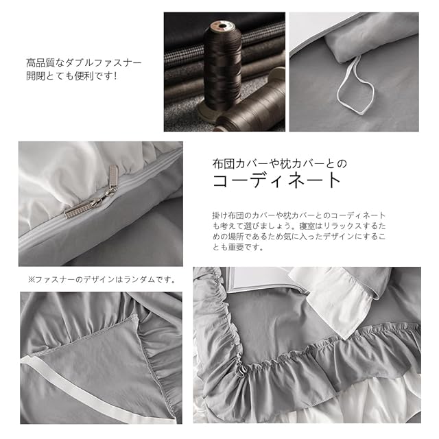 おしゃれな北欧風デザイン:いつもの寝具にセットするだけで、かわいくお部屋を演出。上品なフリルが雰囲気を引き立てます。可愛いフリルが映えるような色合いの生地で布団カバーも作りました。寝室が雰囲気を変わりたい方もぜひお試しください。しっかり生地で、肌触りが良いですから、疲れた体にちゃんとリッラクスできて、癒されたような感じられます。