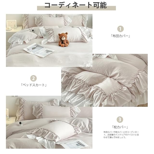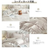 おしゃれな北欧風デザイン:いつもの寝具にセットするだけで、かわいくお部屋を演出。上品なフリルが雰囲気を引き立てます。可愛いフリルが映えるような色合いの生地で布団カバーも作りました。寝室が雰囲気を変わりたい方もぜひお試しください。しっかり生地で、肌触りが良いですから、疲れた体にちゃんとリッラクスできて、癒されたような感じられます。