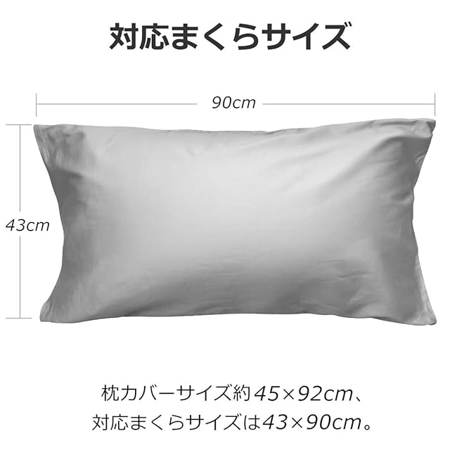 商品名:枕カバー 高級綿100% サテン織り 300本高密度生地 防ダニ 抗菌 防臭 ホテル品質 封筒式 滑らか 柔らかい ピローケース 選べる9色 4サイズ 無地 グレイ セミロング 43×90cm